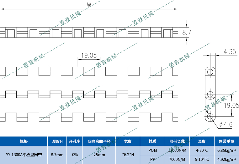 網(wǎng)帶廠家上海昱音機械優(yōu)價供應(yīng)的模塊網(wǎng)帶節(jié)距主要有:節(jié)距12.7mm食品網(wǎng)帶,節(jié)距15.2mm食品網(wǎng)帶,節(jié)距19.05mm食品網(wǎng)帶,節(jié)距25.4mm食品網(wǎng)帶,節(jié)距27.2mm食品網(wǎng)帶,節(jié)距46mm食品網(wǎng)帶,節(jié)距50.8mm食品網(wǎng)帶,節(jié)距57.2mm食品網(wǎng)帶。